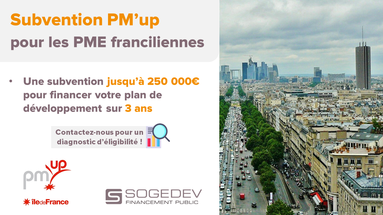 Depuis la création du dispositif PM’up en 2008, nos experts en financement public accompagnent les PME franciliennes dans la demande et la mise en place de cette aide financière. Contactez-nous pour obtenir un diagnostic gracieux de votre éligibilité !