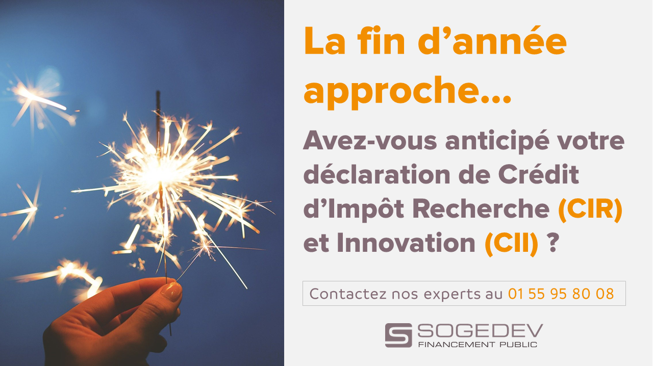 L’année 2020 touche à sa fin ; profitez de la fin d’année pour faire le point sur votre déclaration CIR (Crédit d’Impôt Recherche) ou Innovation (CII) ! Sogedev vous accompagne avec un rappel sur les critères d’éligibilité des dispositifs et les bonnes pratiques pour sécuriser vos dossiers auprès de l’Administration fiscale.