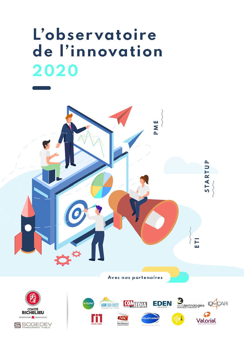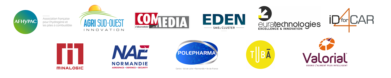 L’Observatoire de l’innovation 2020 a reçu le soutien de 11 partenaires et acteurs économiques des territoires (pôles de compétitivité, clusters, associations) : l’Afhypac, ID4CAR, COM MEDIA, TUBA Lyon, EuraTechnologies, EDEN Cluster, Valorial, Polepharma, Agri Sud-Ouest Innovation, Minalogic et Normandie AeroEspace.